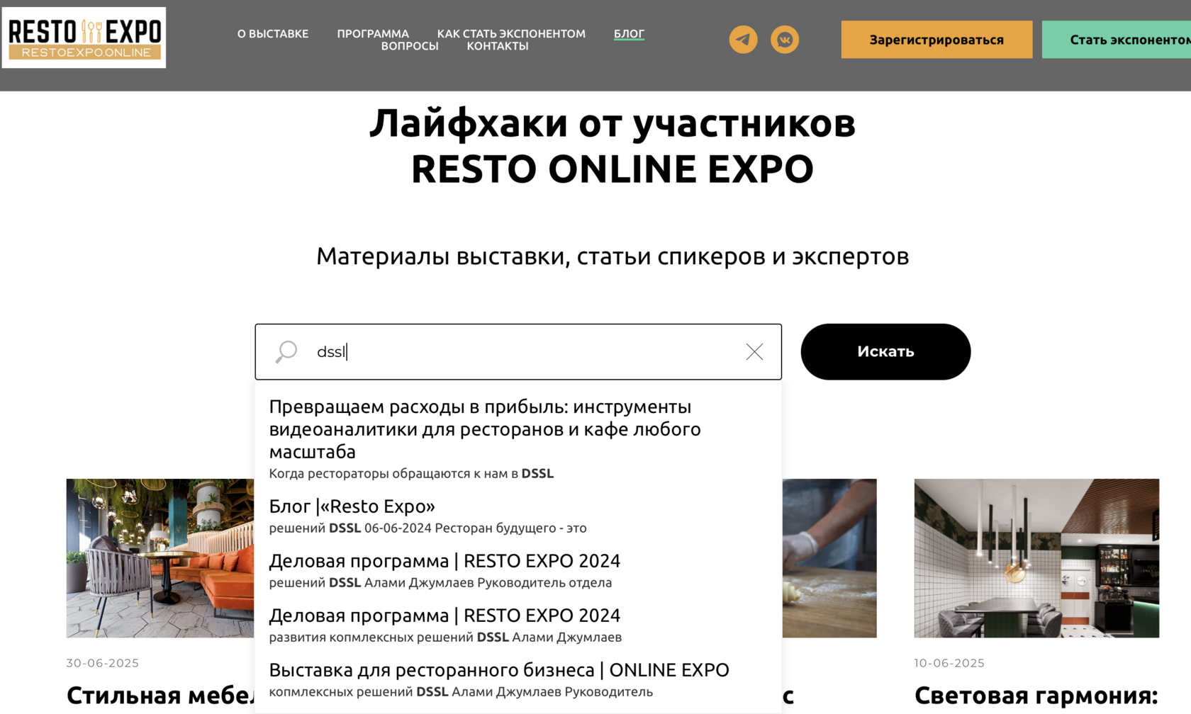 - По итогам выставки подготовлены статьи, размещенные в блоге выставки Hospitality Online Expo: